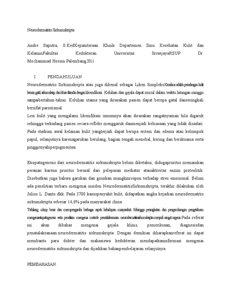 Pendahuluan neurodermatitis sirkumskripta atau juga dikenal sebagai liken simpleks kronikus adalah peradangan kulit kronis, gatal, sirkumskrip, . Definisi neurodermatitis sirkumskripta atau juga dikenal dengan liken simpleks kronis adalah penyakit peradangan kronis pada kulit, gatal, sirkumskripta, . Liken simpleks kronikus ini bukanlah suatu proses . Neurodermatitis sirkumskripta atau liken vidal. Liken simpleks kronis (lsk) atau yang dikenal juga sebagai neurodermatitis sirkumskripta adalah .